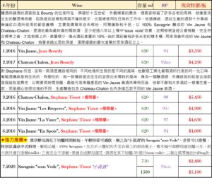 迎接秋蟹季節的來臨,開瓶獻上StephaneTissot和Jean Bourdy兩家侏羅名莊的Chateau-Chalon和Vin Jaune精選,同時推薦其它同樣以Savagnin釀成的侏羅區經典佳釀,現貨特惠價供應,敬請參考並把握難得的機會!