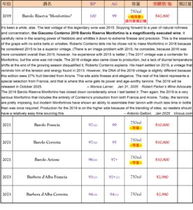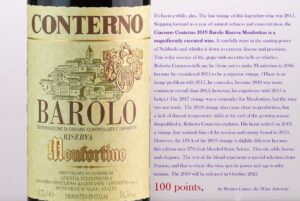 睽違連續三個不生產的年份,開瓶獻上即將上市的Giacomo Conterno Barolo Riserva “Monfortino” 2019,已經獲得義大利酒評權威Monica Larner (Robert Parker’s Wine Advocate) 與Antonio Galloni (Vinous)雙雙再度評為100分和99分的完美評價,同時獻上其它品質同樣優異的最新年份佳釀,敬請參考並把握難得的預購機會!
