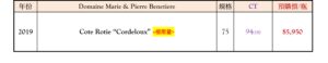 開瓶獻上Domaine Marie & Pierre Benetiere的Cote Rotie “Cordeloux” 2019,入手困難的北隆河珍稀瑰寶,最新年份的優先配額,數量稀少,敬請參考並把握預購良機!